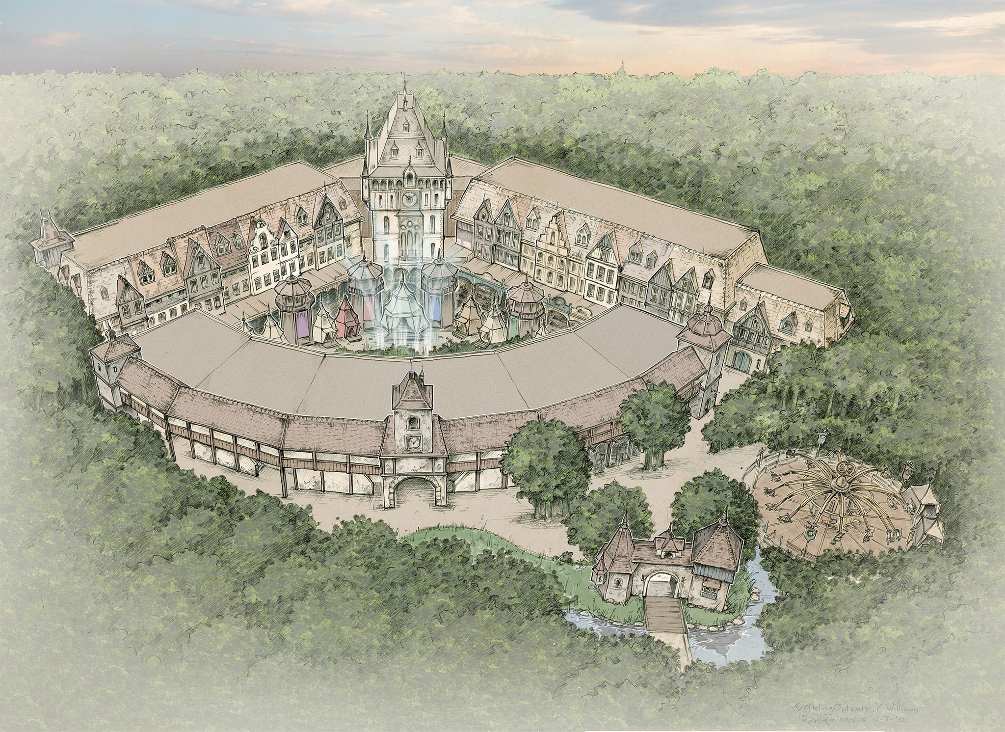 Eerste ontwerp uit midden augustus 2025 van Karel Willemen voor Raveleijn (2026) zoals eind augustus gepubliceerd door de Efteling