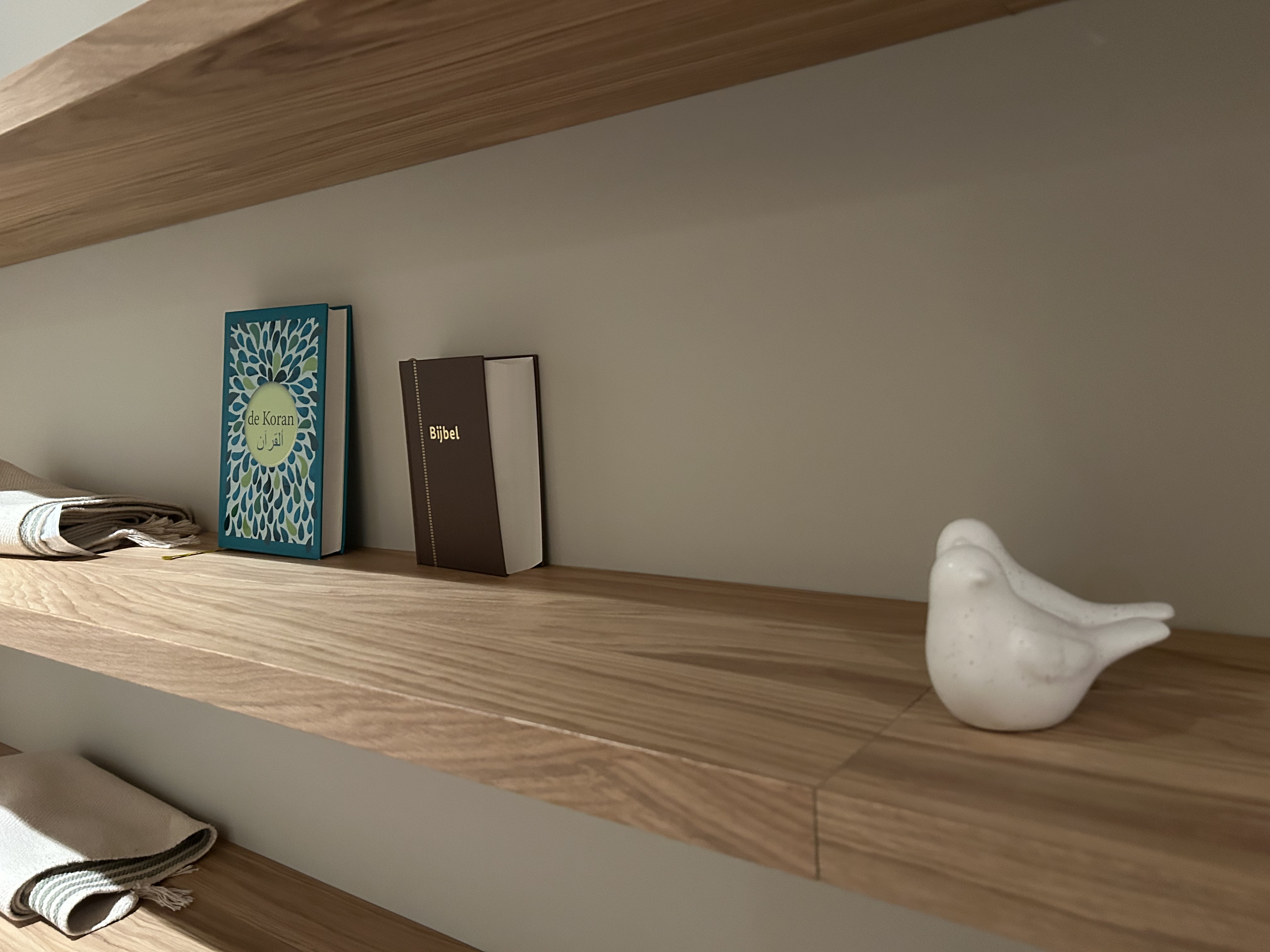Bestand:Stilte-plank.jpeg Uit Eftepedia Plank in de stilteruimte van het Efteling Grand Hotel met onder andere heilige boeken Foto: Eftepedia Dit bestand wordt op de volgende pagina gebruikt: Stilteruimte