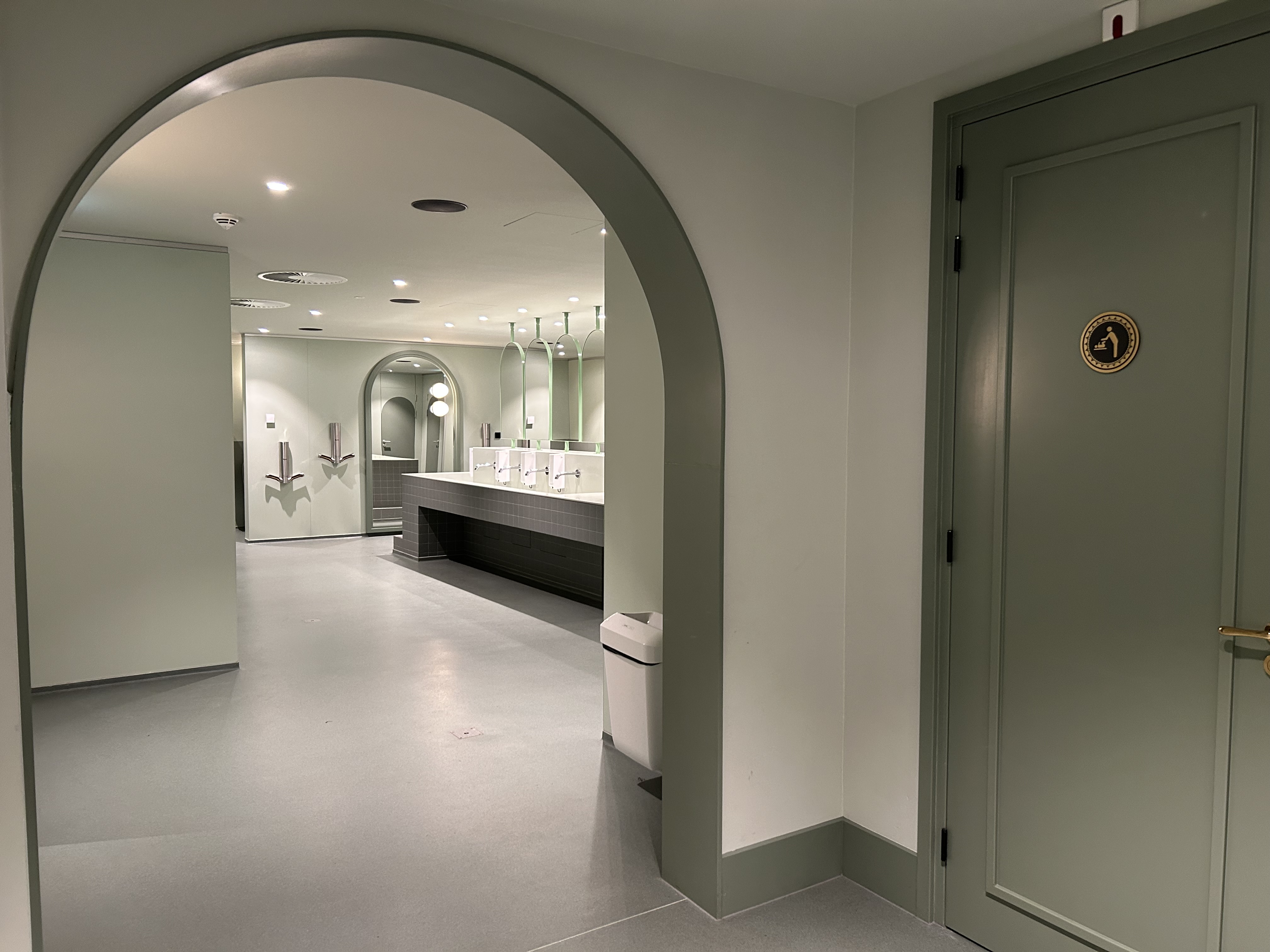 Als je middels de gang onder de Arcade doorloopt, kom je bij een poortje dat toegang geeft tot de openbare Toiletten Grand Hotel.