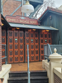 Vervolgens gaat de rij, over het bordes, verder langs het Kompels Bagage Depot: een batterij overkapte lockers in de oksel van het gebouw, waar tassen gedeponeerd moeten worden. Je krijgt een bonnetje waarmee je die bagage na het uitstappen aan de achterzijde uit dezelfde locker kunt halen. De bezoekers worden verdeeld in een ploeg A en een ploeg B, van twee maal 18 man (plus eventuele niet-rijders), waarmee precies twee treinen kunnen worden gevuld.