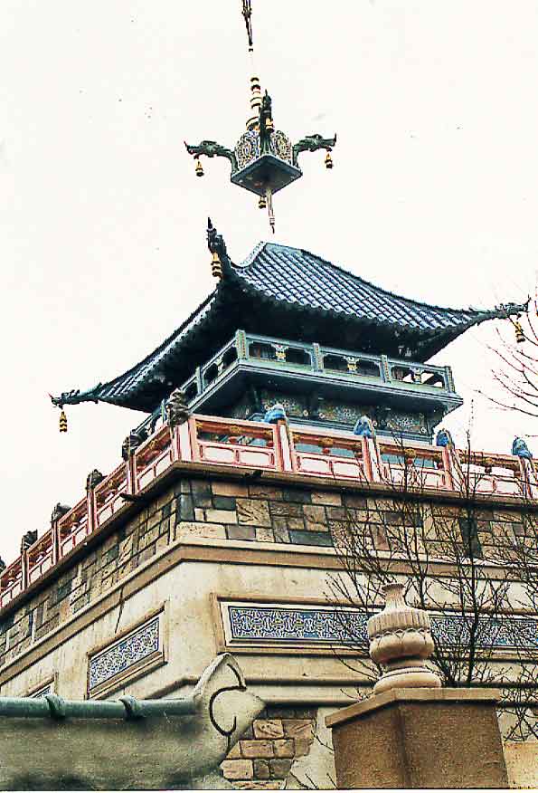 Plaatsing van de toren op het dak van De Chinese Nachtegaal.