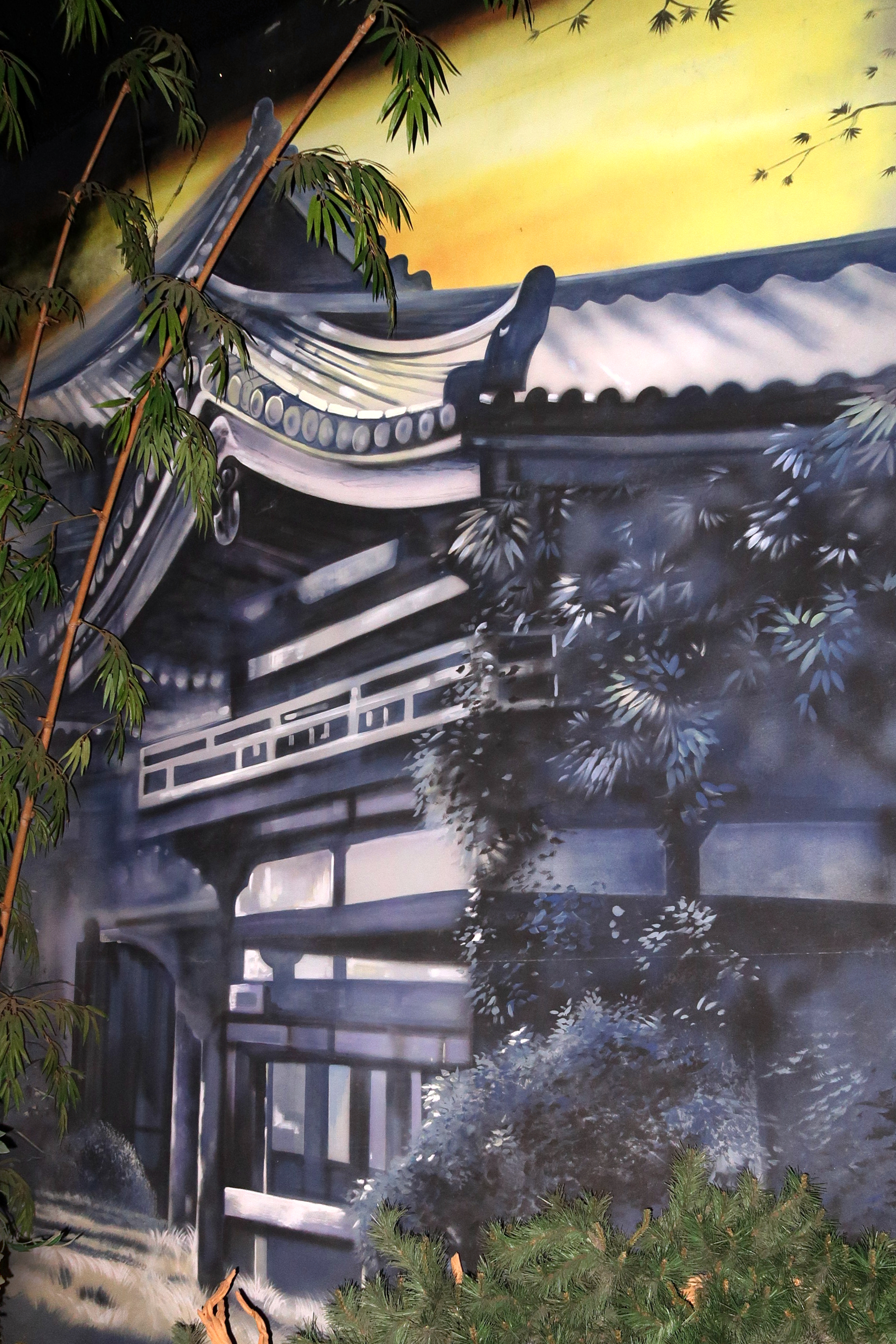 Wandschildering van een paleis in het interieur van de Chinese Nachtegaal.