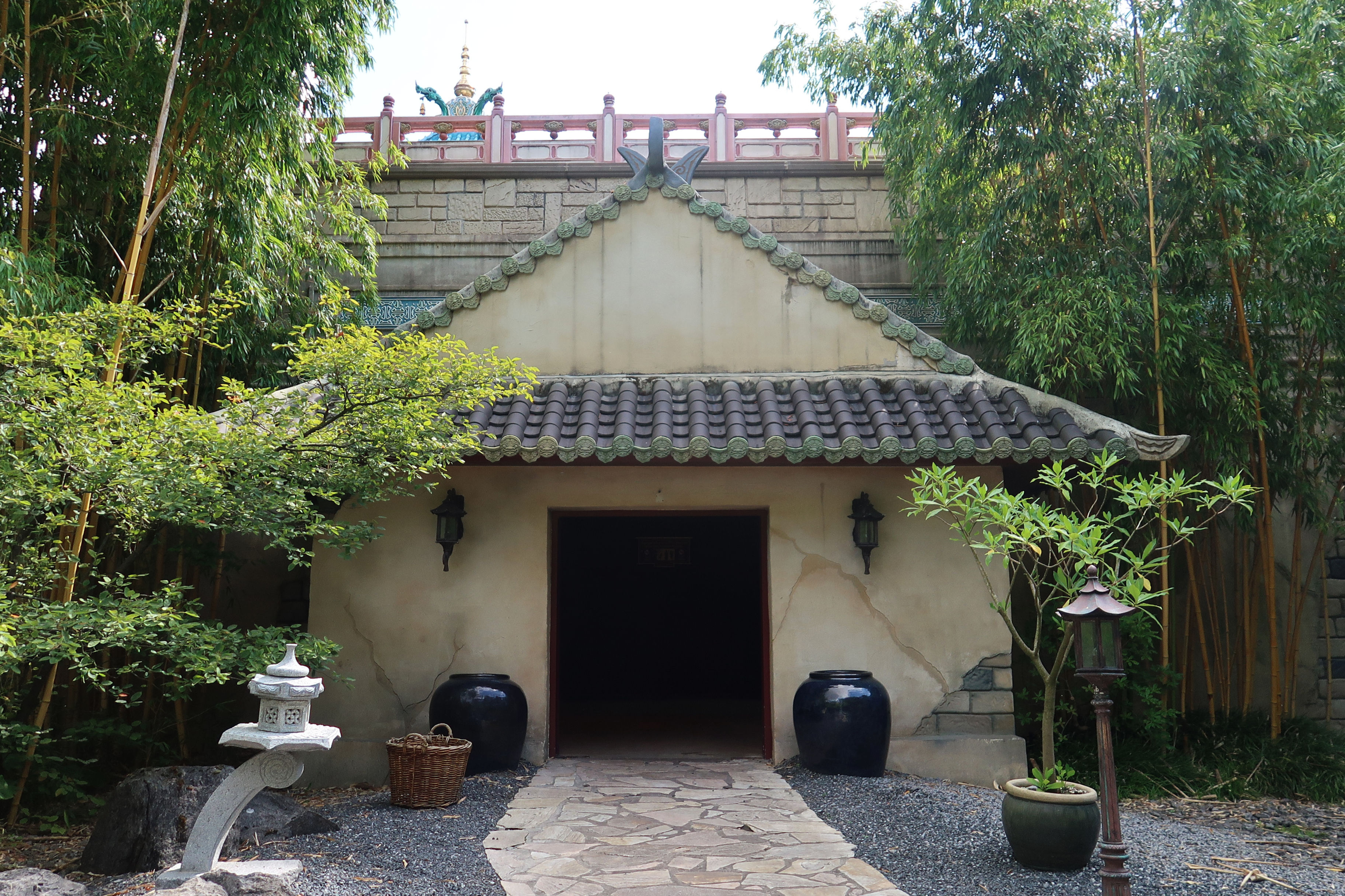 Uitbouw in de voortuin van de Chinese Nachtegaal biedt toegang tot het interieur van het sprookje.
