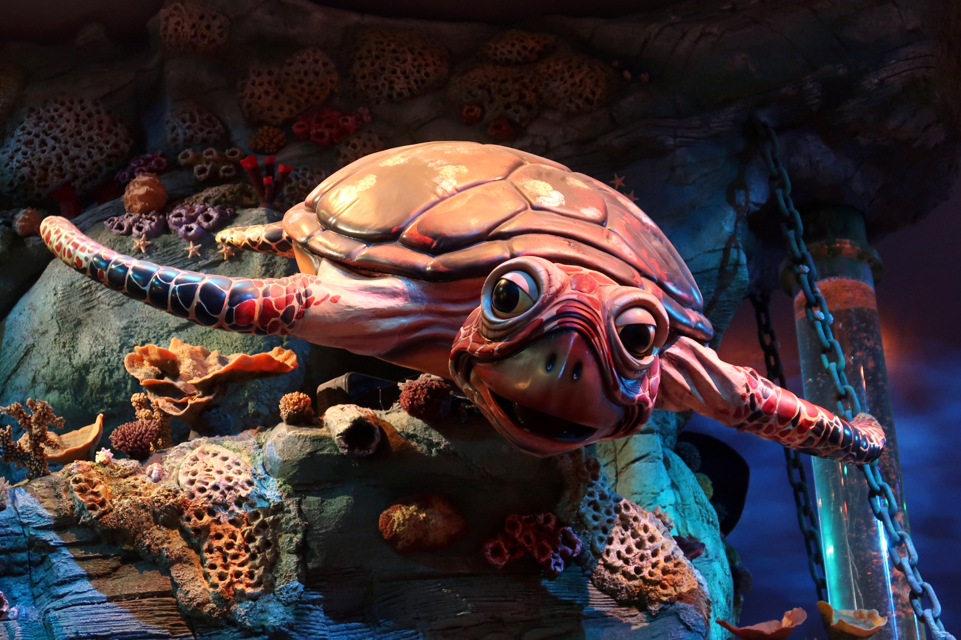 Animatronic Aura de zeeschildpad in de Speelwereld van Fabula.