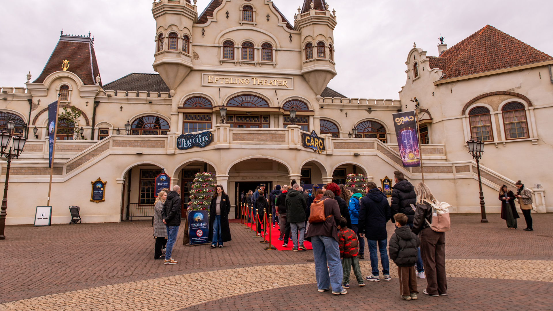 Wachtenden voor de parkshow Magicaluna op het Theaterplein