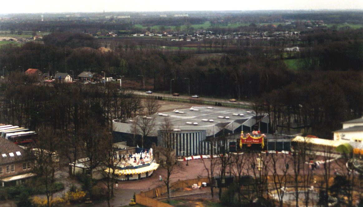 Noorderplein 1987. Onderin is Monsieur Cannibale in aanbouw. Het Efteling Hotel en Vogel Rok zijn er nog lang niet.