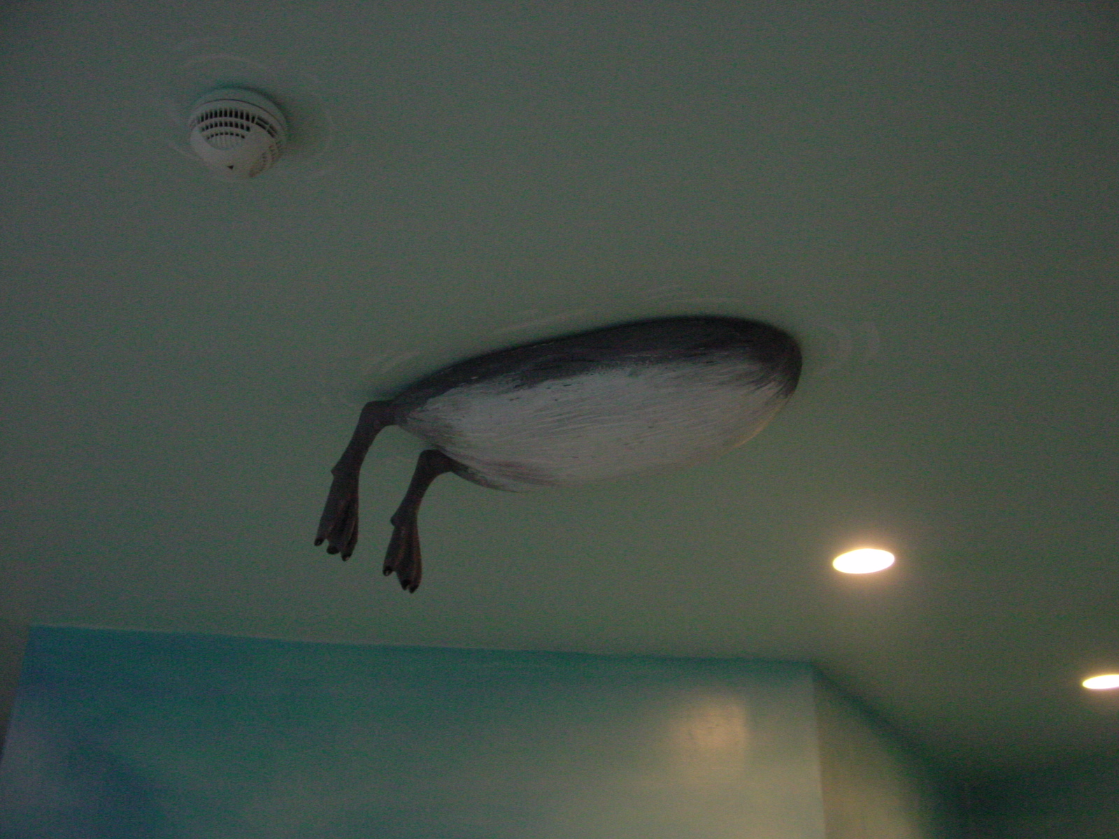 Onderkant zeevogel steekt door wateroppervlak in toiletgroep PandaDroom in 2002 - Foto: collectie WWCW