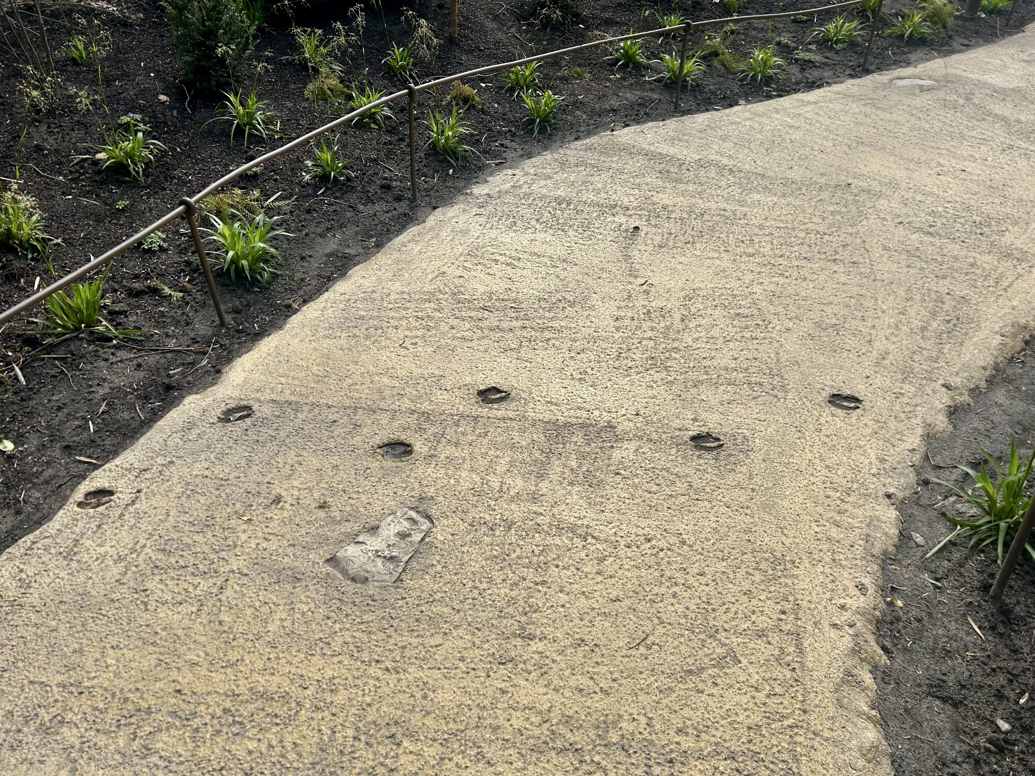 Spoor van een antilope (?) die het wandelpad van het Wandelwoud was overgestoken toen het themabeton nog niet droog was.