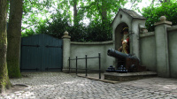 Deze Gijs vraagt niet om papier hier, maar commandeert met de stem van Ton van de Ven "Papier daarrrr!" Wanneer het afval in het kanon wordt gestopt klinkt er een luide knal. Via een ondergrondse pijp komt de rommel in een opvang achter de muur terecht. Het kanon is gemodelleerd naar een kleine variant van een 17e of 18e eeuws scheepskanon. Opvallend is dat de speaker van de knal bij het Sprookjesbos nog onder het kanon verstopt was, maar de luidspreker bij de situatie in Ruigrijk elders zit.