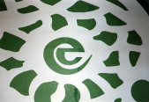 Geschilderde taartonderlegger met daarin een Efteling-E