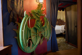 Het hoofdgedeelte van de suite is in groentinten en gelakt hout, verwijzend naar het moeras waar de draak uit het verhaal woont. Hiet staat het tweepersoonsbed, en ook het 'Kabinet der strijdlustigen', waarin verzamelingen en studies van eerdere drakenstrijders te vinden zijn: drakenvondsten, tekeningen en heldendrankjes.