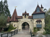 Als een Efteling-bezoeker door de poort loopt, wordt die net als de familie Woudenberg, teruggeworpen in de tijd en bevindt zich vanaf dan in het middeleeuwse stad Raveleijn. Achter de poort zijn de toegang tot de tribunes van de Raveleijn-parkshow, een toilet en een pad naar het restaurant Het Wapen van Raveleijn.