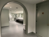 Als je deze trap afdaalt kom je bij een lange gang die je onder de Arcade doorvoert. In deze gang kom je eerst langs een deur voor de stilteruimte, daarna twee deuren voor twee identieke babyverschoonruimtes. Aan het eind van de gang geeft een poort toegang tot de daadwerkelijke toiletgroep, die aan de andere zijde van de Arcade gesitueerd is, recht onder de winkel Arcadeau.